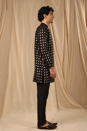 Details: Black Wallflower Kurta - Kurta comes with Mandarin Collar and Placket embellished with our signature Toffee Mascots to give a desi vibe!