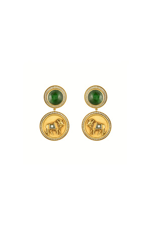 Specifications - 18 Carat Gold with an Antique Finish | Full Cut Diamonds | Cabochon Emeralds
