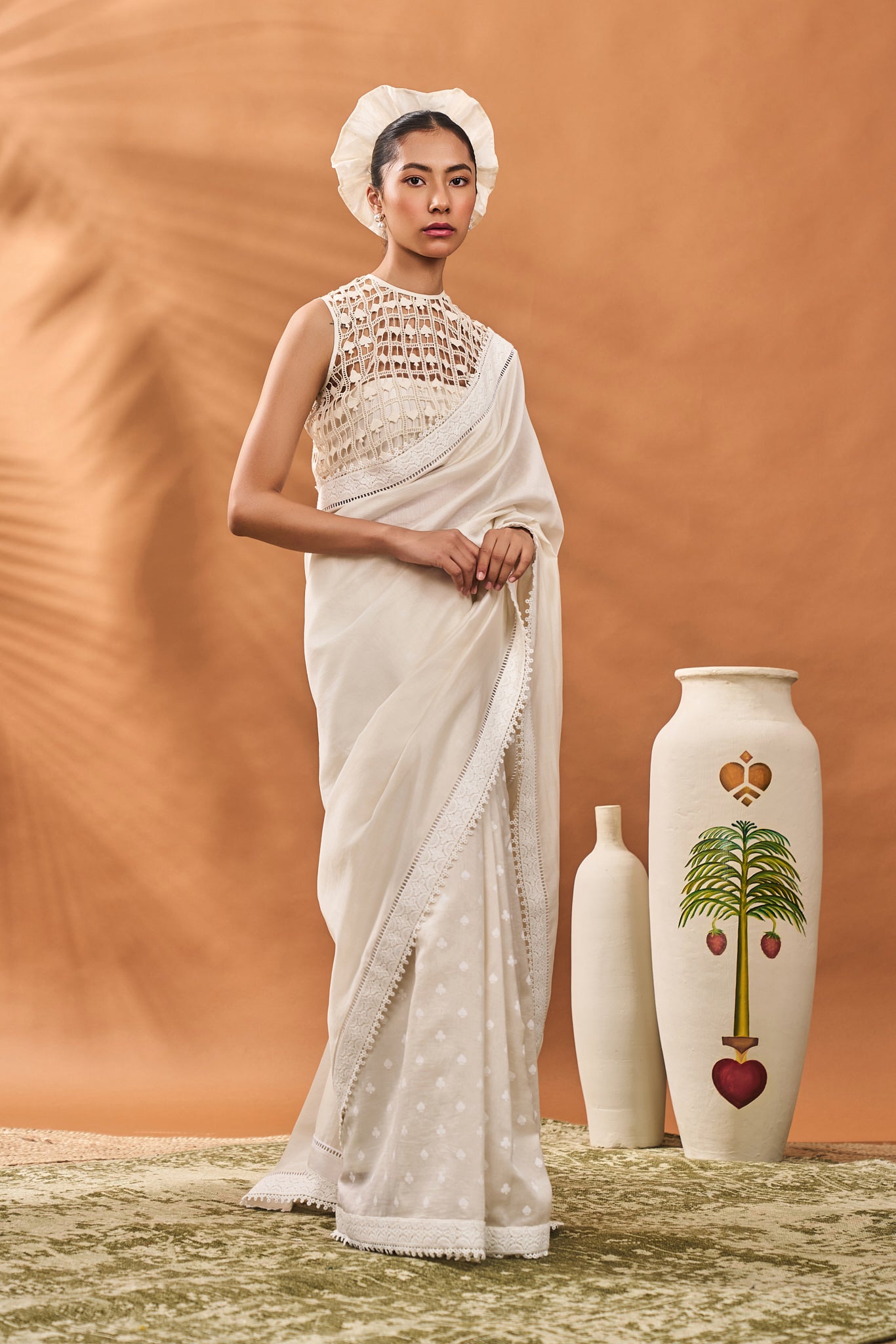 Color: Saree- Ivory | Blouse- Ivory | Bustier- Ivory