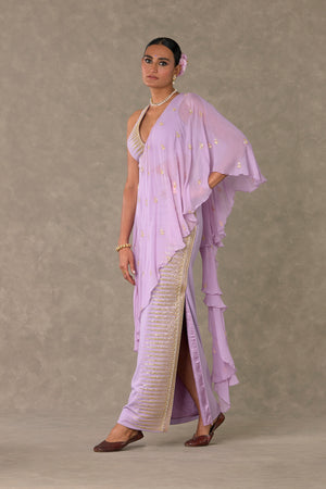Lilac Trikone Saree Gown