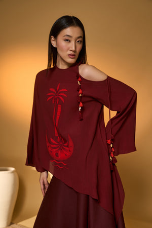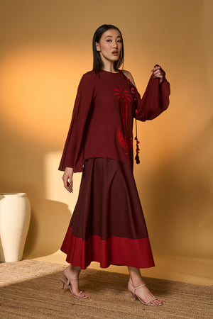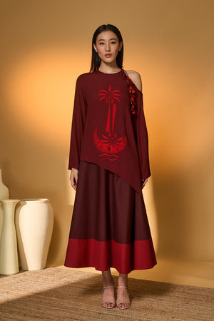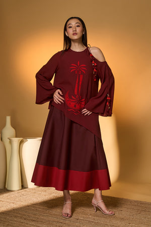 Maroon Lunar Lagoon Skirt Set
