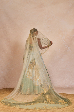 Fabric: Lehenga - Heavy Raw Silk | Blouse - Heavy Raw Silk | Dupatta 1 - Organza | Veil - Net