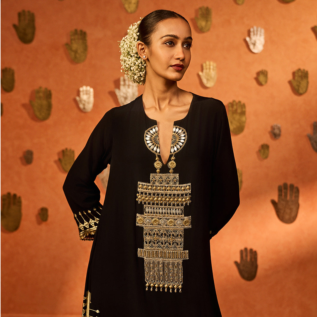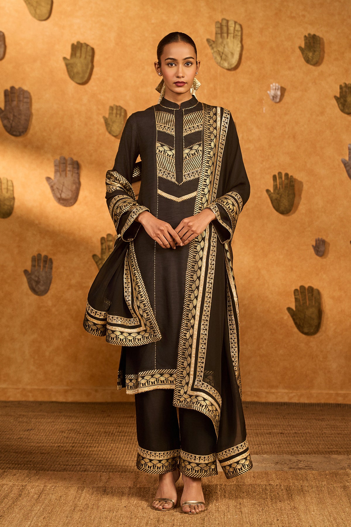 Black Potters Touch Gota Saree
