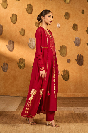 Fabric: Kurta- Raw Silk | Pants- Raw Silk | Jacket- Georgette
