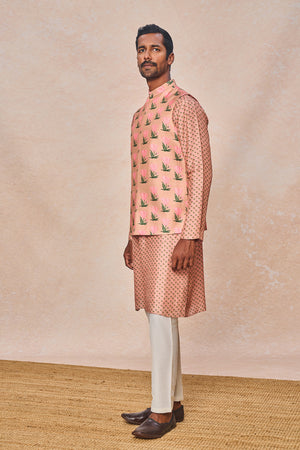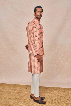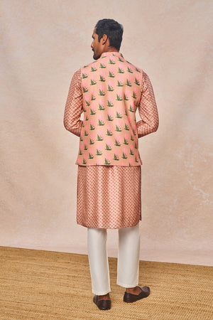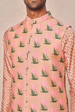 Details: Pink Tulip Bandi Set - Digital placement printed Bandi | Mandarin collar | Concealed placket | Center front opening