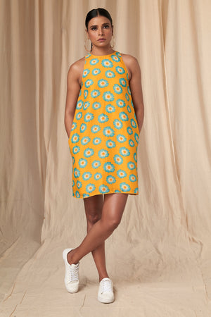 Classic Yellow Crazy Daizy In-Cut Mini Dress