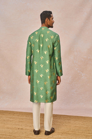 Details: Kurta- All over foil printed kurta | Full sleeves | Mandarin collar | Pocket detail | Concealed placket Pant- Straight pants with pocket