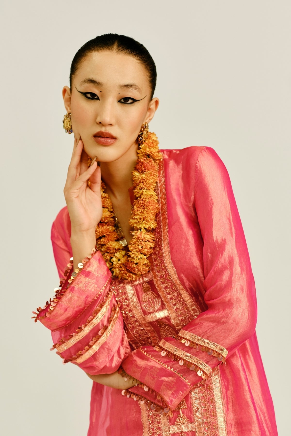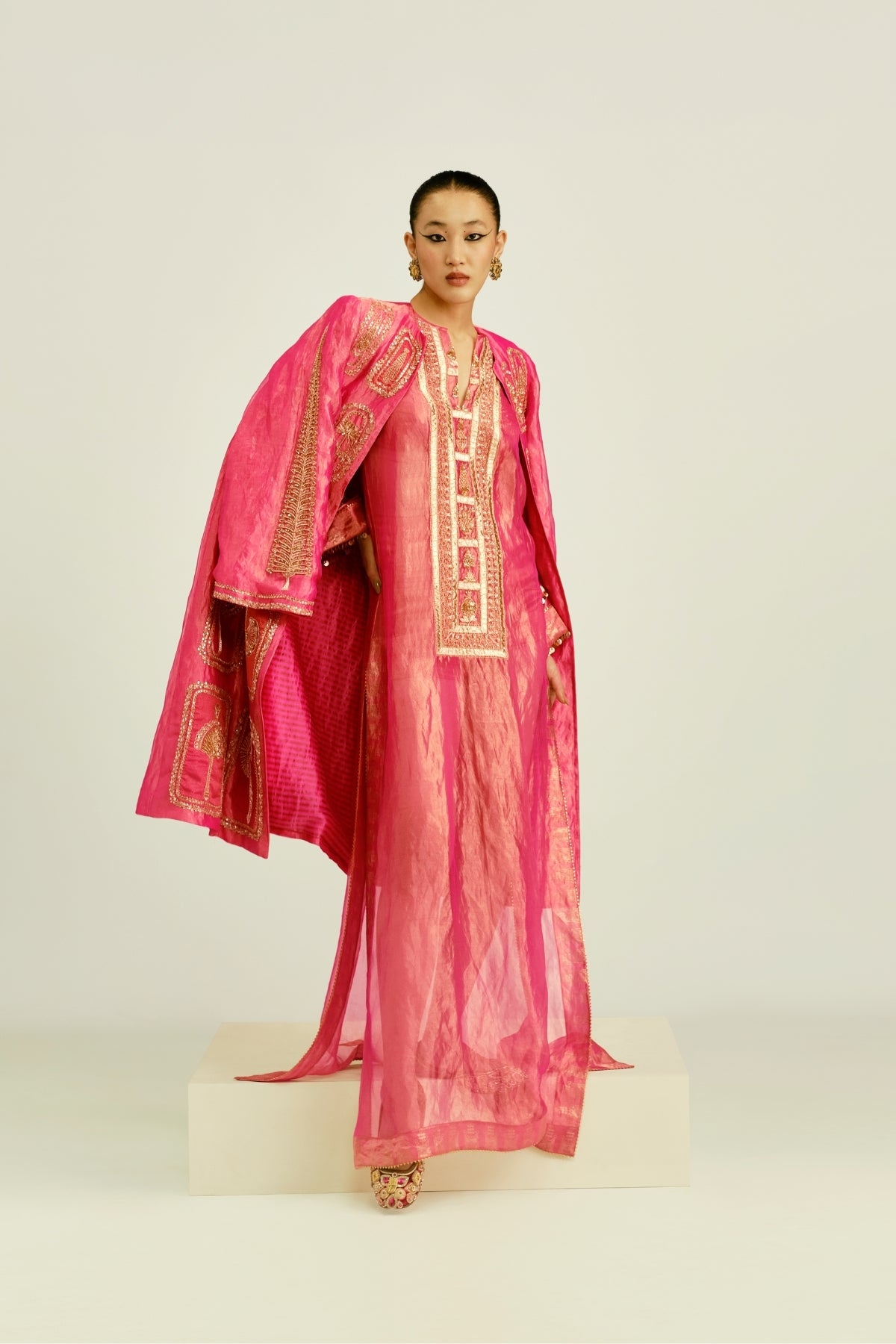 Designed for all body types, our bridal sarees flatter with A-line drapes, voluminous pleats, and clean silhouettes that enhance natural confidence.