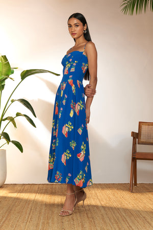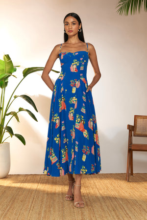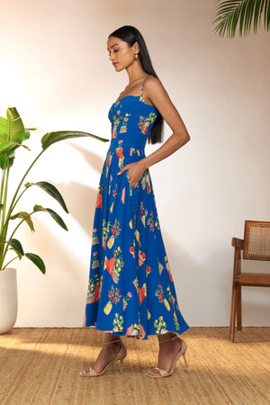 Details: Blue Tangy Tango Corset Dress - Full length dress | Gathered side panels | Corset bodice | Adjustable strap | Centre back zipper closure