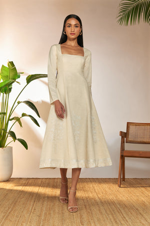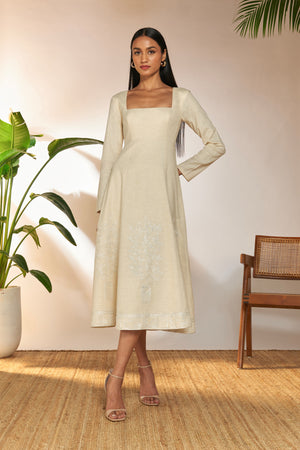 Details: Ivory Full Sleeve Embroidered Dress - Square neck | Full sleeves | Embroidered body | Centrre back zipper closure