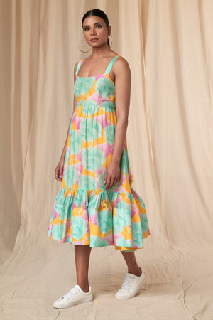 Details: Aquamarine Bloomerang Skater Dress - A- Line | Square Neck | Tassels