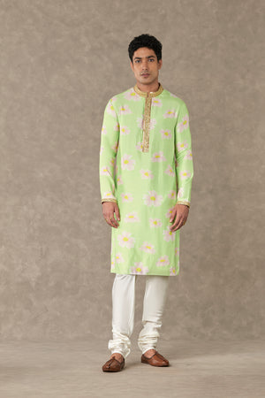 Details: Mint Parijat Kurta - All over digital printed kurta with full sleeves embellished with border| Concealed placket and Mandarin collar embellished with border | Pocket detail