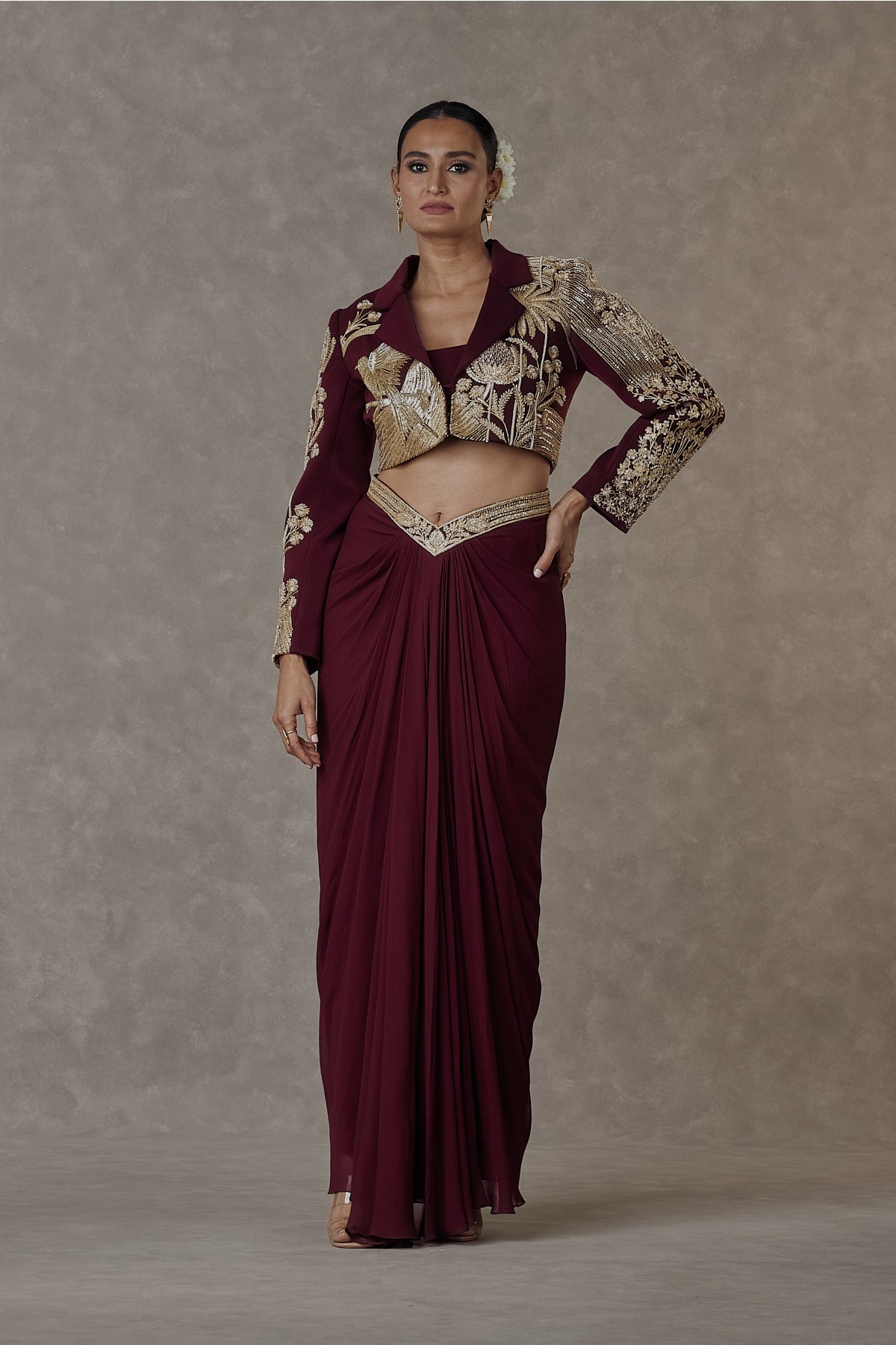 Fabric: Cropped Blazer - Textured Knit | Tube - Textured Knit | Drape skirt - Georgette