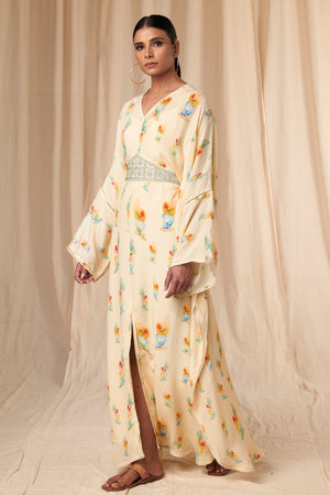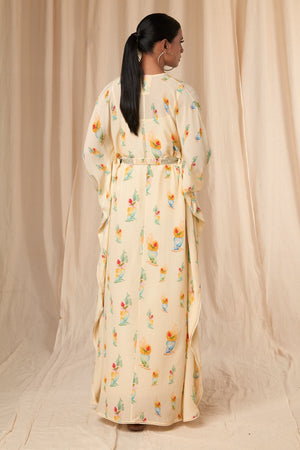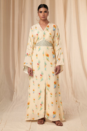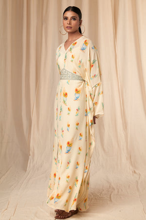 Ivory Rock N Roll Kaftan Dress with Belt