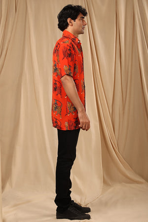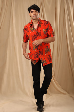 Details: Red Sultan Shirt - Button Down Shirt with half sleeves