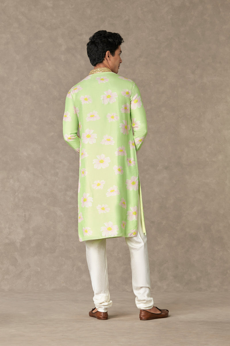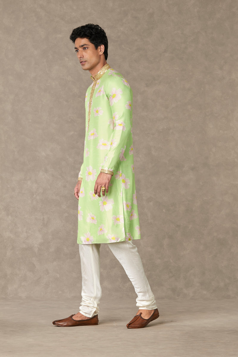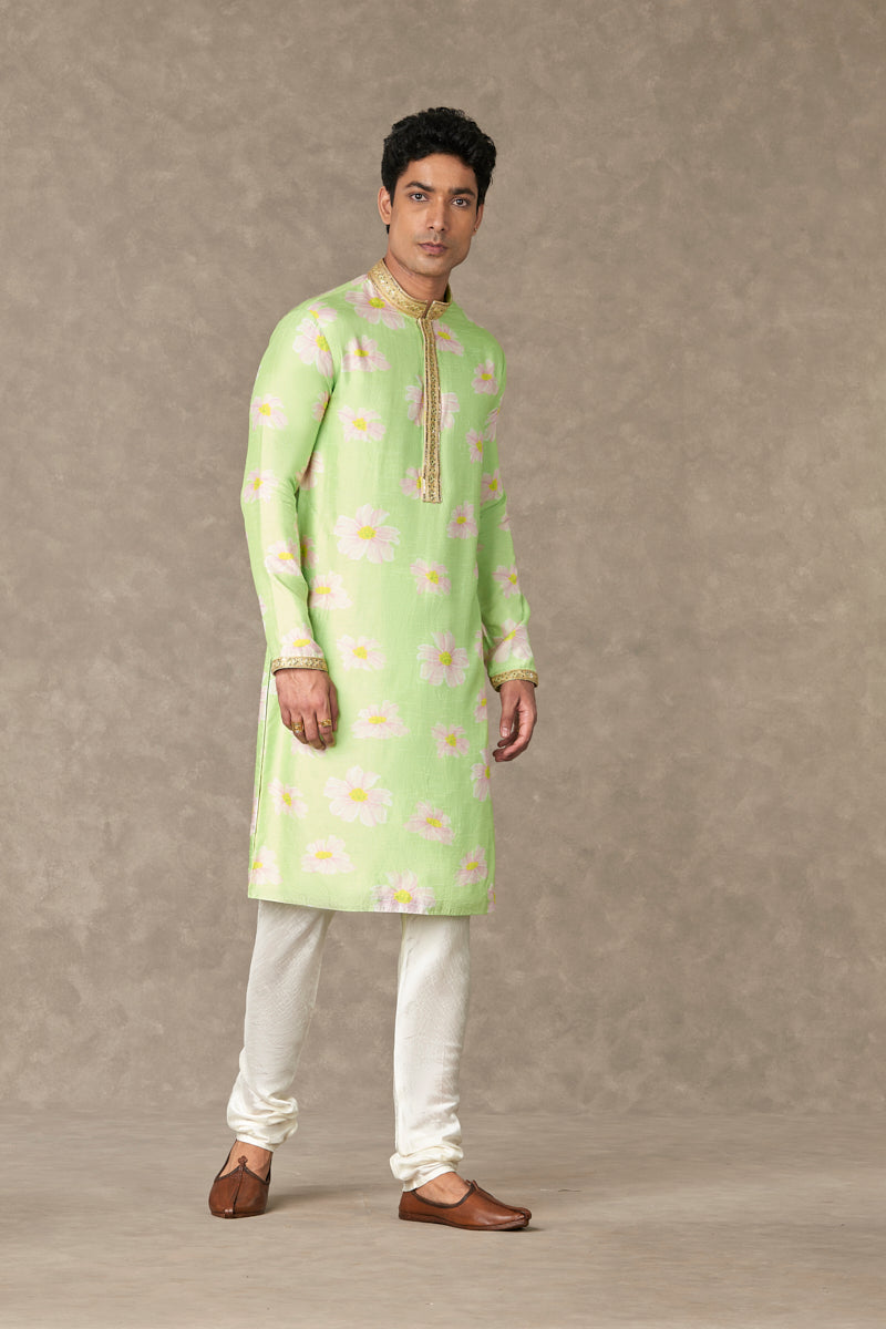 Details: Mint Parijat Kurta - All over digital printed kurta with full sleeves embellished with border| Concealed placket and Mandarin collar embellished with border | Pocket detail