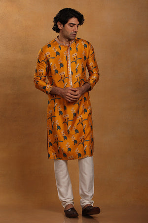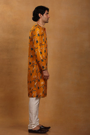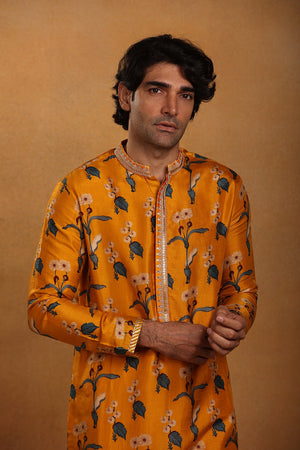 Details: Mustard Spring Blossom Kurta - Kurta comes with Mandarin Collar and Placket embellished with embroidered border to dazzle at special occasion!