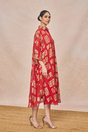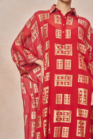Red Open Doors Foil Collar Kaftan