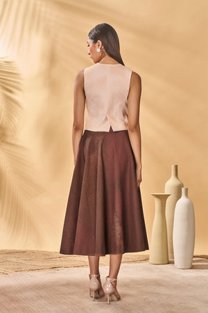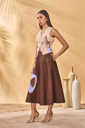 Color: Waist Coat- Apricot | Swing Skirt- Walnut Brown
