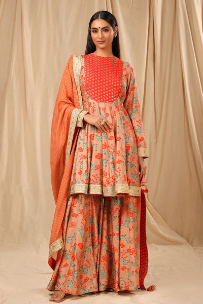 Ready To Ship Pink Tropical Rhapsody Sharara Set