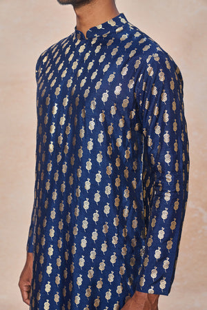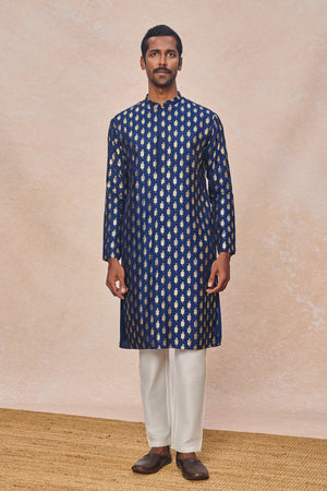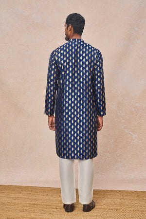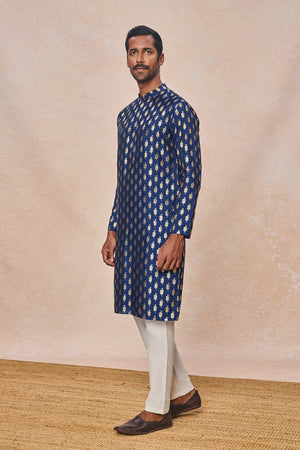 Styling: Style this timeless Navy Blue Teardrop Kurta Set with a pair of mojris.