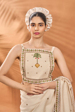 Ivory Tree Of Hearts Saree