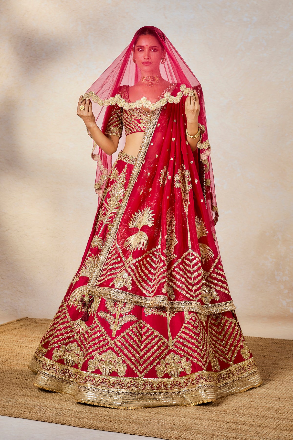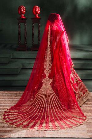 Fabric: Lehenga- Heavy Raw Silk | Blouse- Heavy Raw Silk | Dupatta- Silk Organza | Veil- Tule