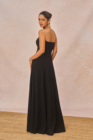 Details: Gown - Strapless gown | Fit to flare | Back opening | Printed facing | Stole - Crystal tassels | Signature motif at two ends