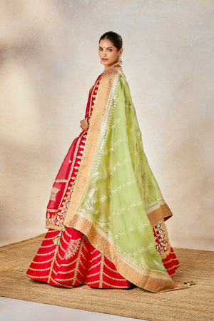 Fabric: Lehenga- Heavy Raw Silk | Kurta + Koti- Dupion & Heavy Raw Silk | Dupatta 1- Silk Organza | Dupatta 2- Silk Organza | Saree- Dupion