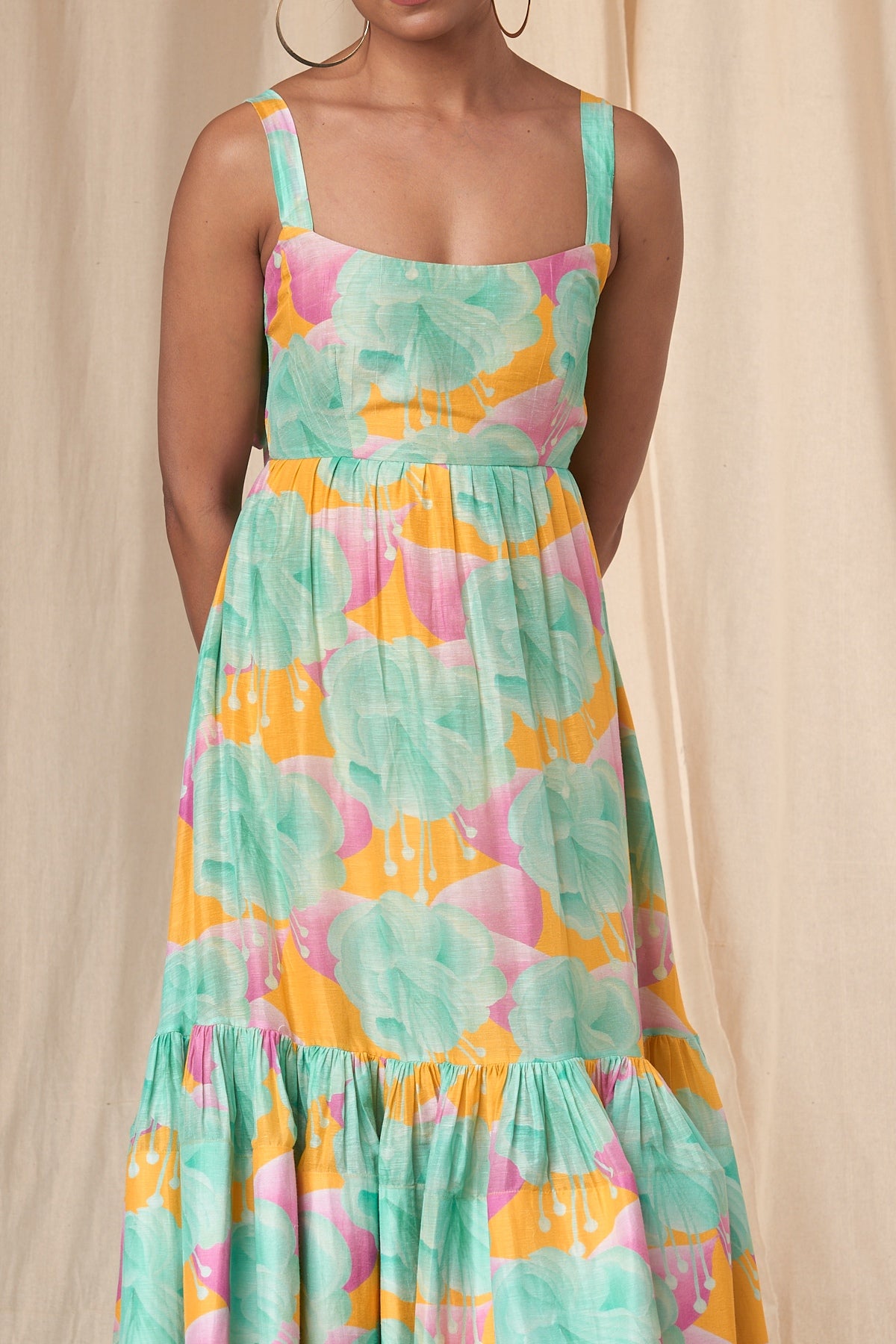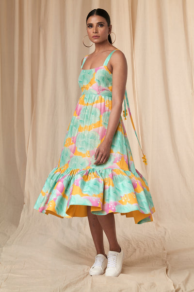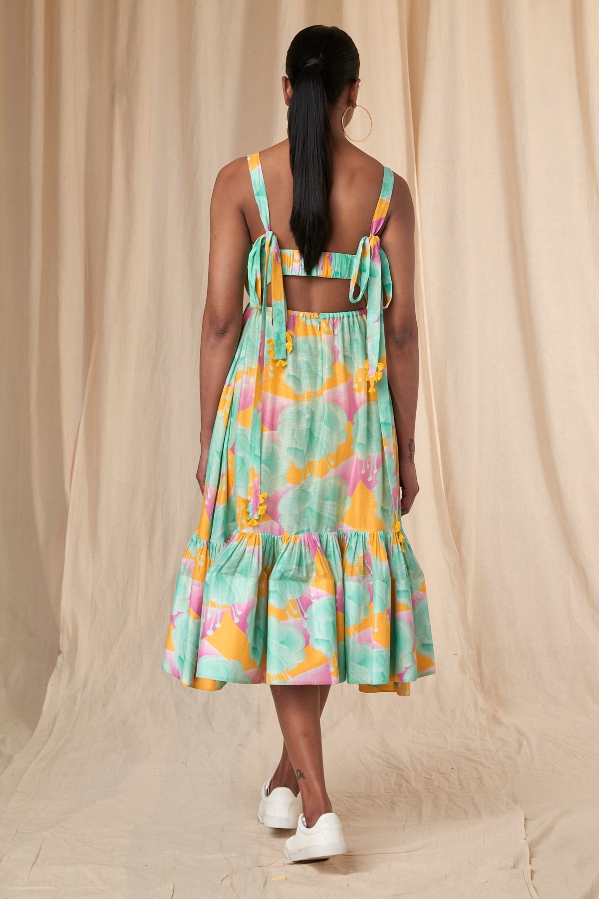 Details: Aquamarine Bloomerang Skater Dress - A- Line | Square Neck | Tassels