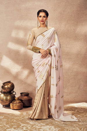 Beige & Pink Traveller's Palm Saree