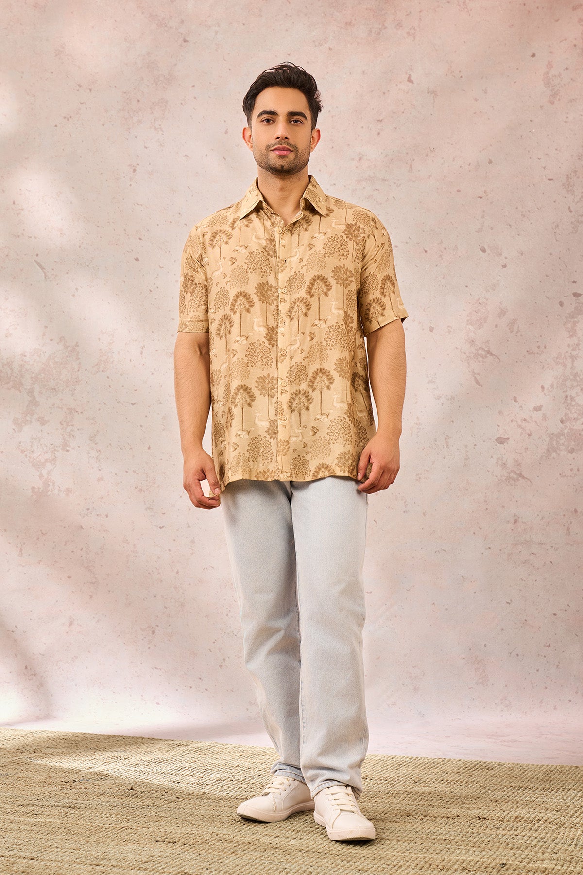 Details: Shirt- All over digital printed shirt | Standcollar | Front placket