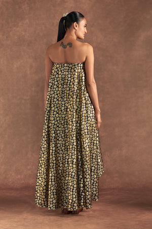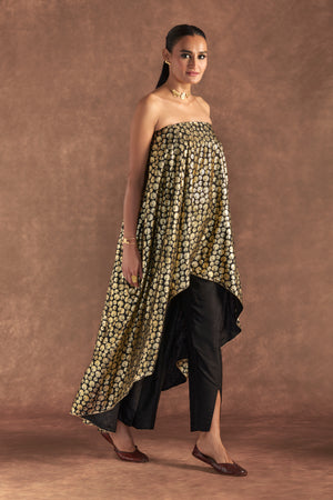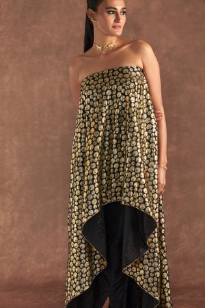 Details: Black Berrybloom High-Low Tube Top Set - All over foil Tube top with high-low hemline edged with kinari