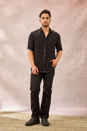 Details: Shirt- Shirt with digital print patch at the back | Standcollar | Front placket | Gold Toffee button attached to the side seam