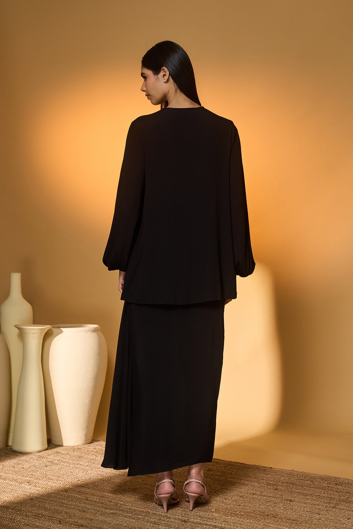 Fit: Slit Shirt- Relaxed | Drape Skirt- Fitted