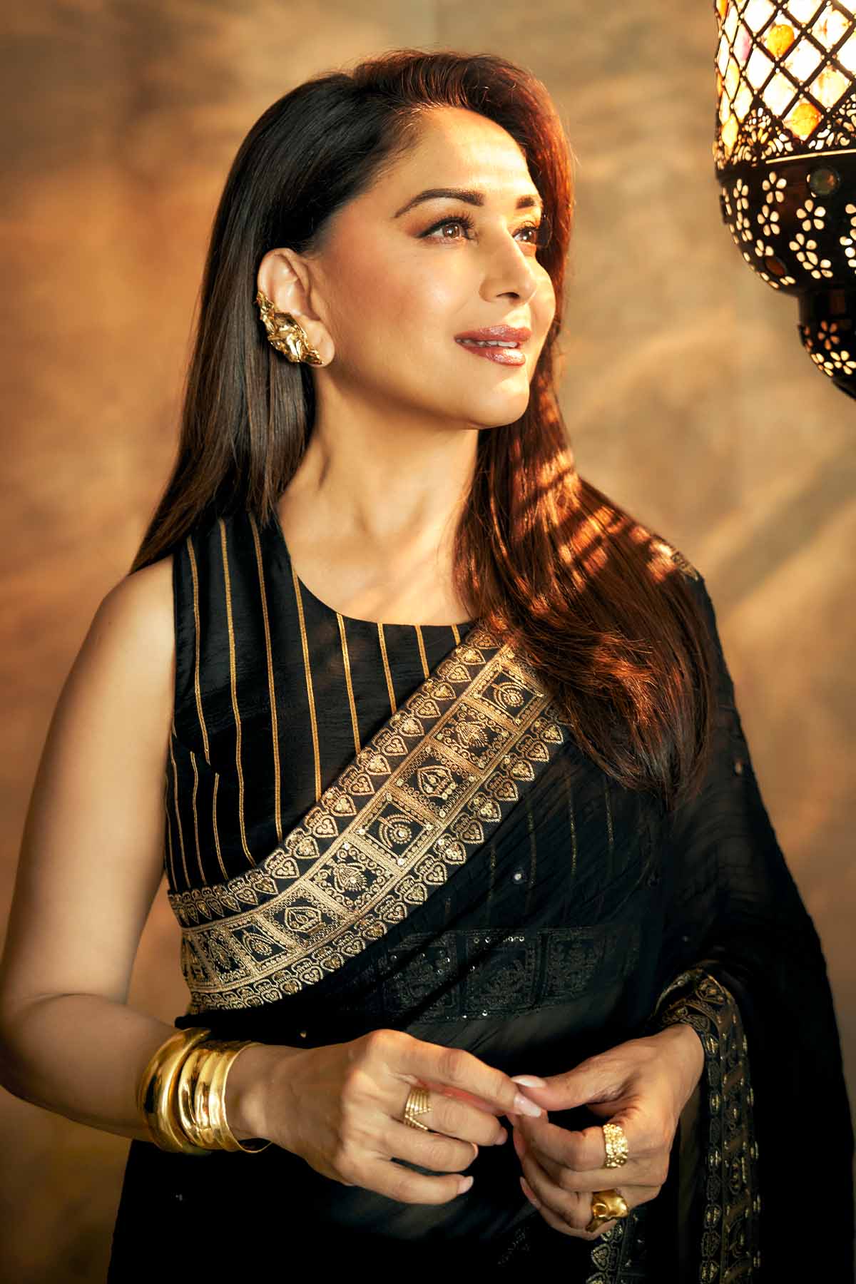 Details: Saree - Half n half saree with mirror embellished crushed palla and potter's touch foil | Embellished jacquard border | Tassels Blouse piece - Blouse piece with gota work