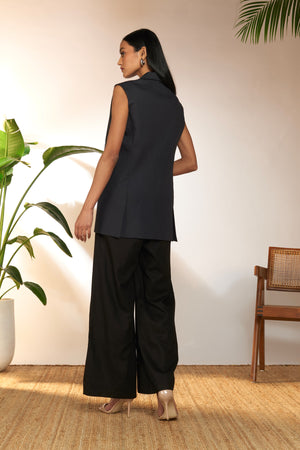 Styling: Pair this Black Sleeveless Blazer with our statement jewellery and heels