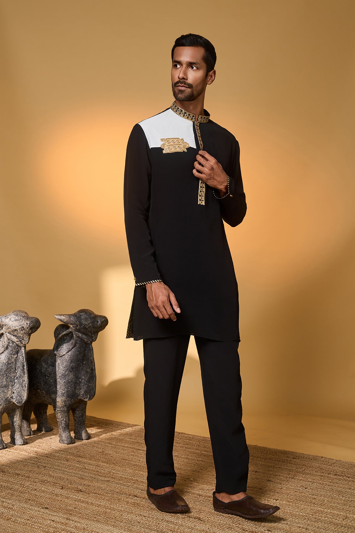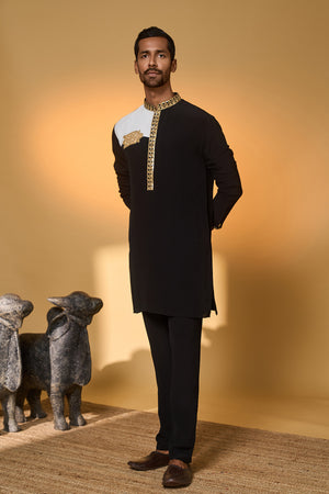 Details: Kurta – Black and white color combination | Features a Turtle Tale tissue appliqué with embroidery on the kurta | Pant- Straight pants with pocket