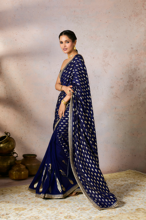 Blue Whispering Lily Crush Saree