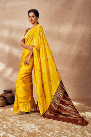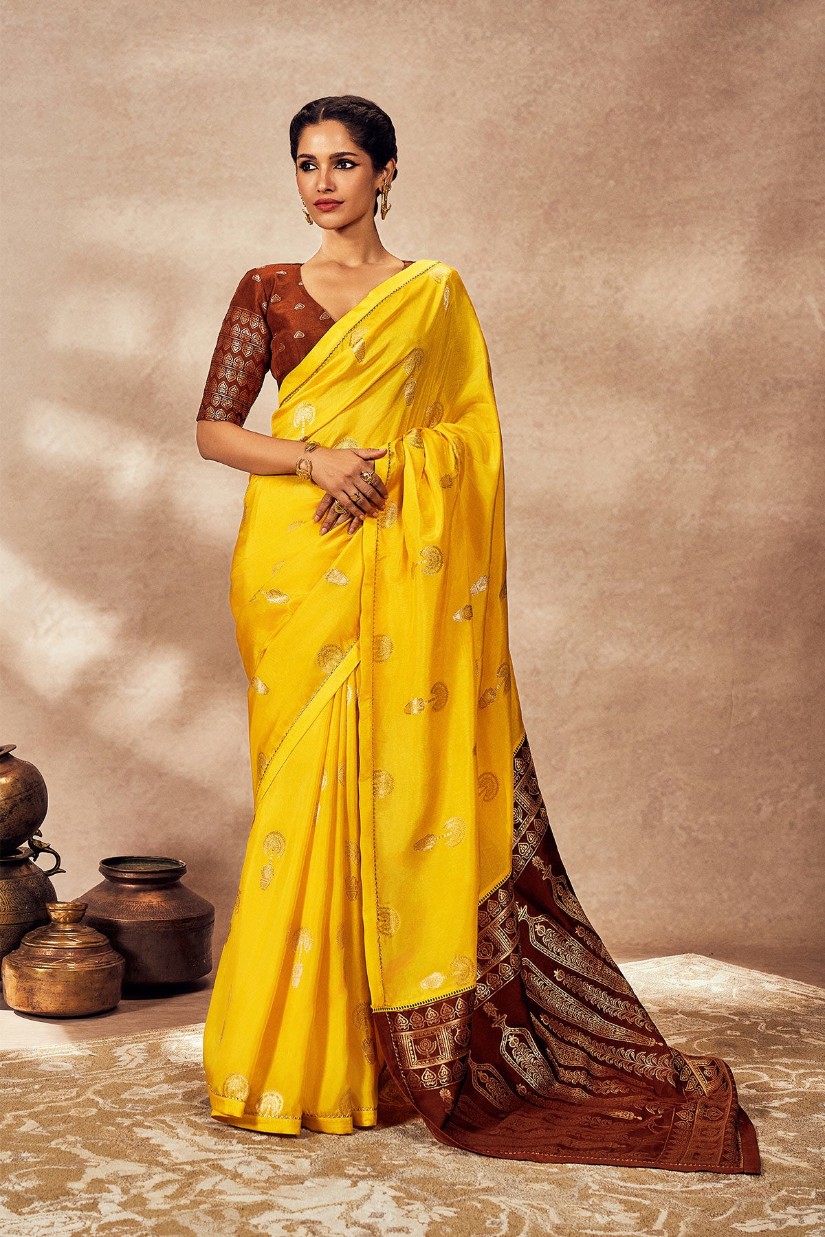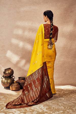 Details: Saree - Jacquard saree edged with kinari| Contrast jacquard pallu