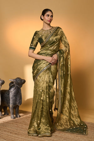 Green Polka Tissue Saree