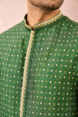 Details: Kurta- All over digital printed short kurta | Full sleeves |Mandarin collar | Concealed placket Pant- Straight pants with pocket