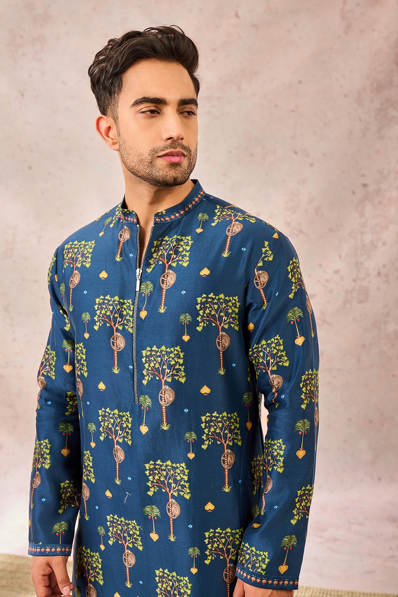 Details: Kurta- All over digital printed long kurta | Full sleeves |Zipper detail with mandarin collar