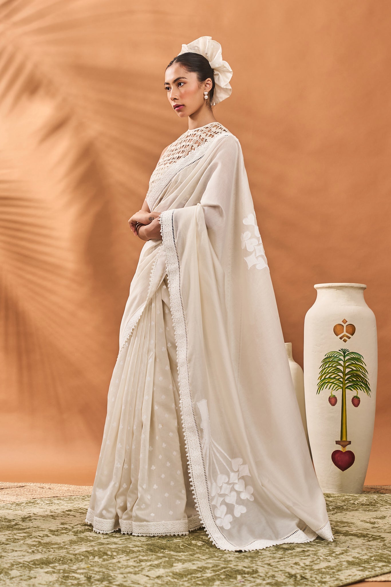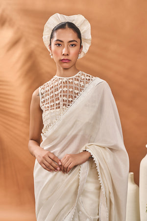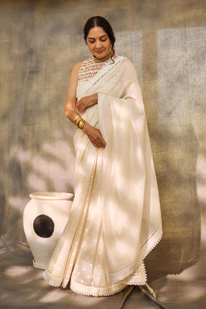 Color: Saree- Ivory | Blouse- Ivory | Bustier- Ivory