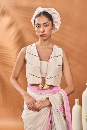 Color: Saree- Ivory | Blouse- Ivory | Bustier- Ivory