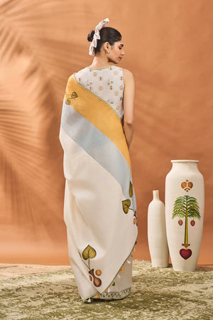 Ivory Stripe Garden Grid Saree