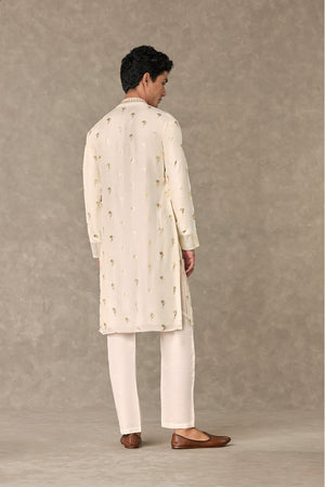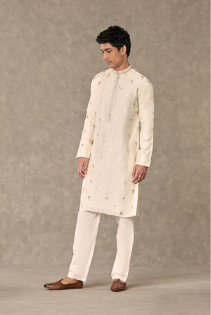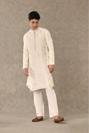 Details: Ivory Wine Garden Kurta Set Kurta- Gold foil printed kurta with full sleeves | Embellished collar and concealed placket | Pocket Detail |Mandarin Collar