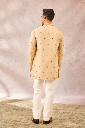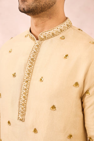 Details: Kurta - Embellished kurta with 'Berry Bel' motif in gold dori, sequins and cutdana embroidery| Embellished placket & collar