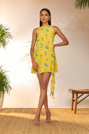 Styling: Pair this Yellow Wrap Mini Dress with our statement jewellery and heels