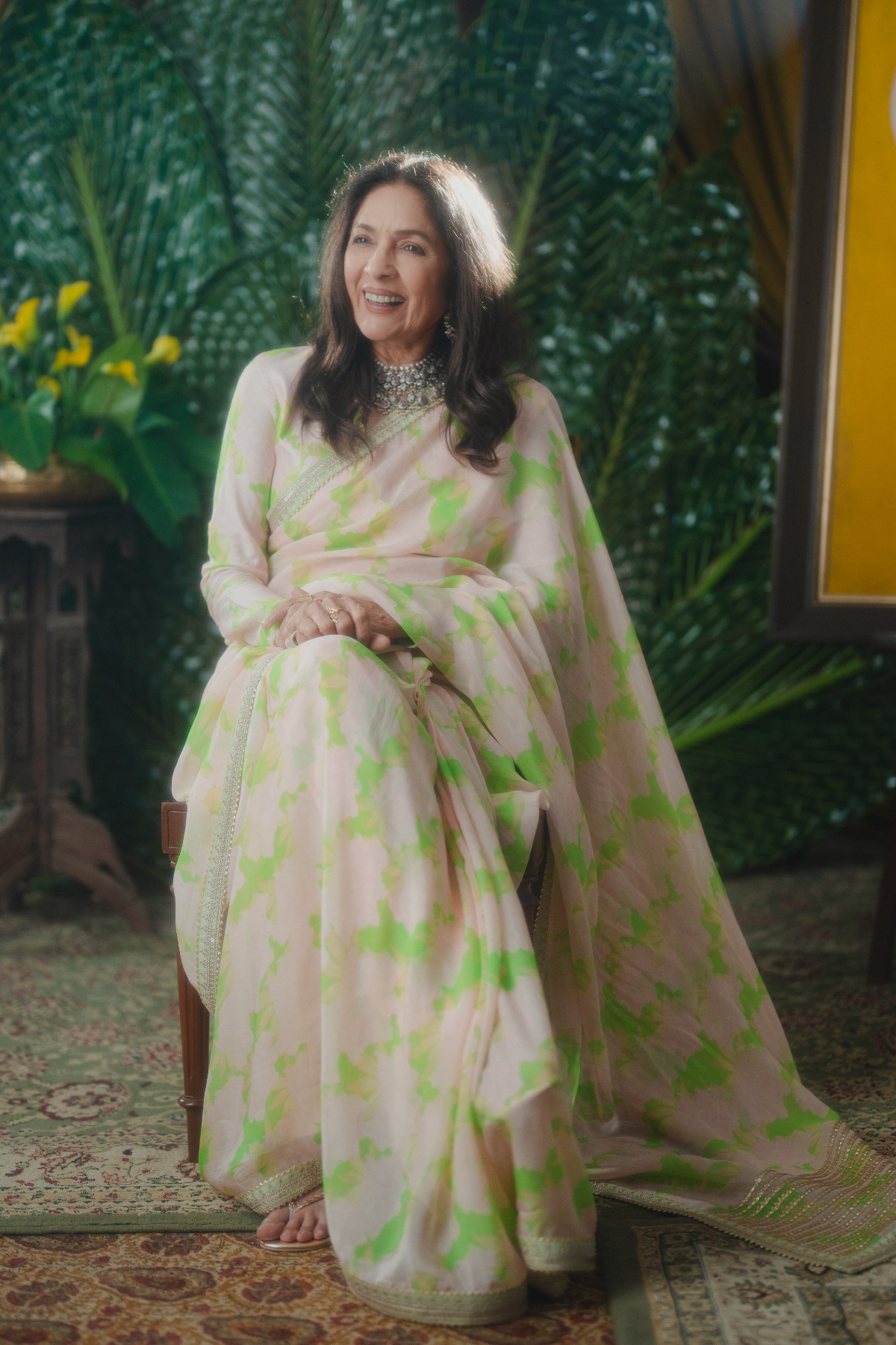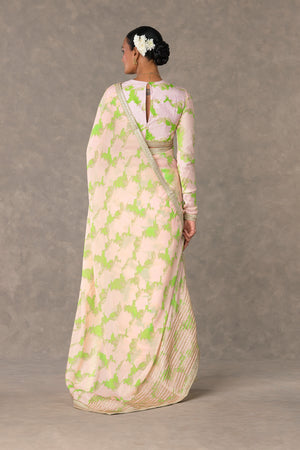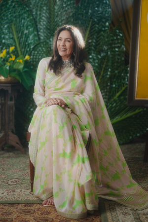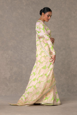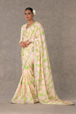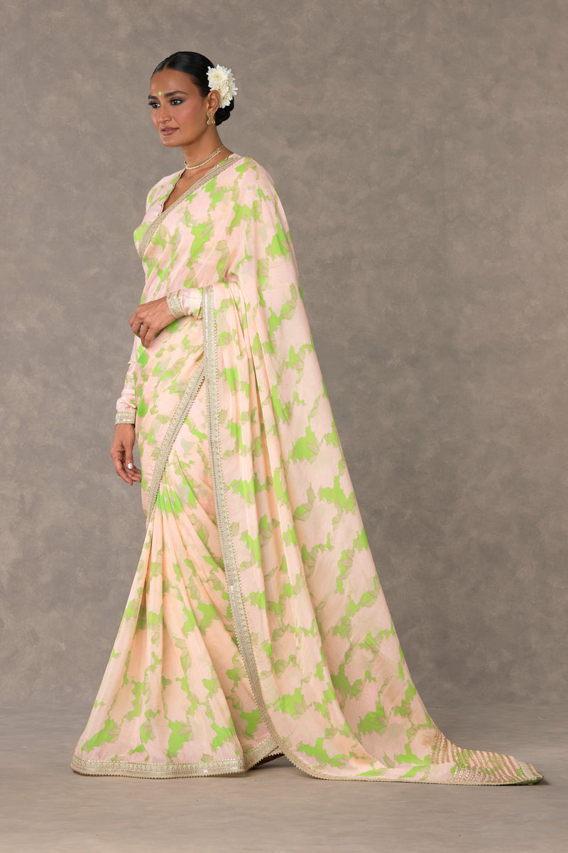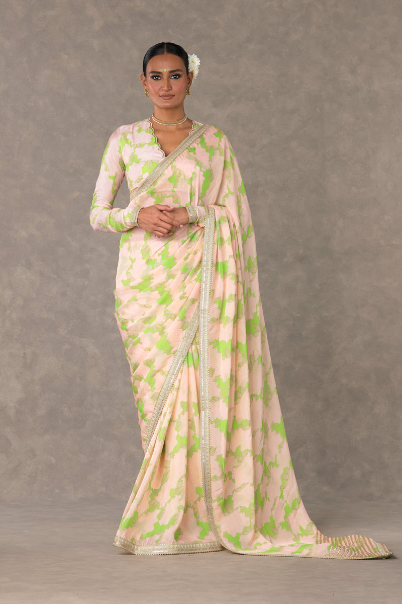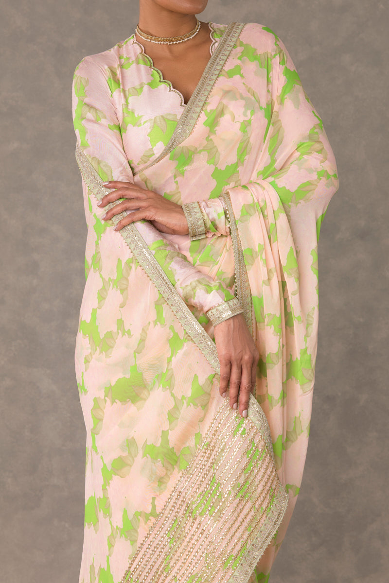 Details: Mint Green Saree - All over digital printed saree | Embellished with borders and complimenting gota patti silai palla Blouse piece- Digital printed blouse piece with 'Madakal' neckline